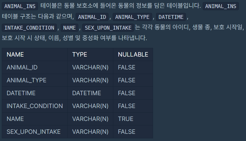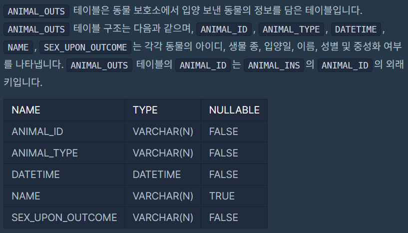 | [mysql/oracle] 보호소에 중성화한 동물 (0) | 2023.09.04 |
