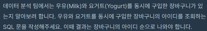 같은 cart_id에 요거트, 밀크가 모두 들어있어야 한다.