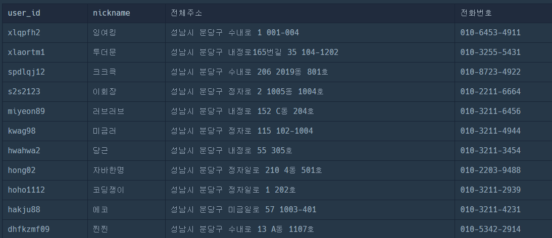 [mysql/oracle] 조건에 맞는 사용자 정보 조회하기