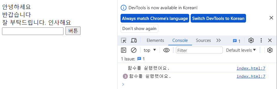 - 버튼이 클릭되었을 때 안쪽 코드가 실행된다.