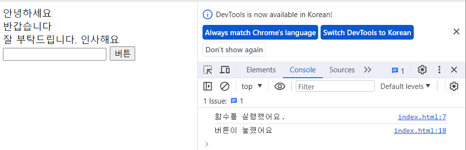버튼을 누르면 console.log가 실행된다.