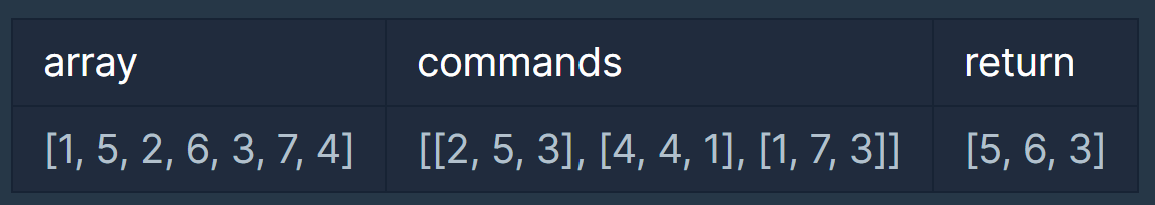 랜덤으로 배열을 주면 그 배열에서 m부터 n까지 뽑아서 p번째 원소를 출력하는 문제다.