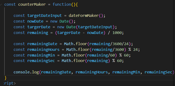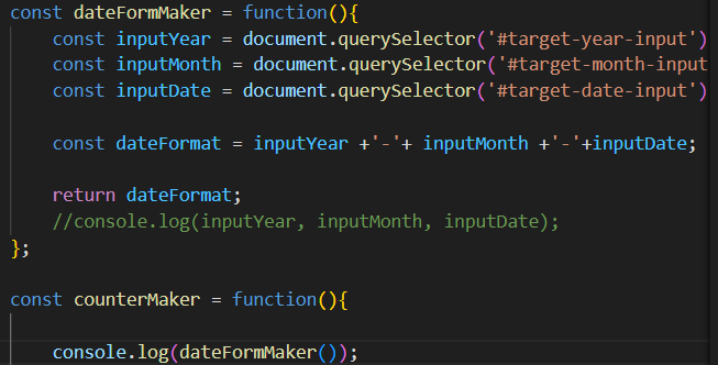 지난번에는 counterMaker에서 dateFormMaker함수를 실행시킬 수 없었는데
