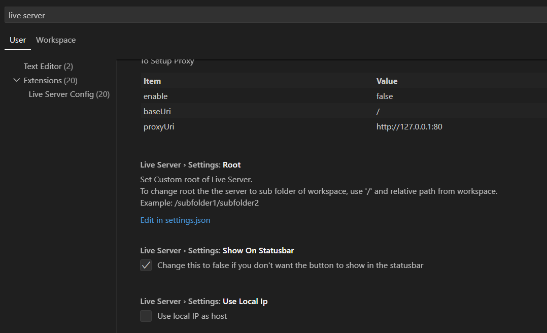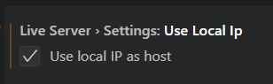 live server의 세팅창에서 [Use Local Ip]를 체크한다.
