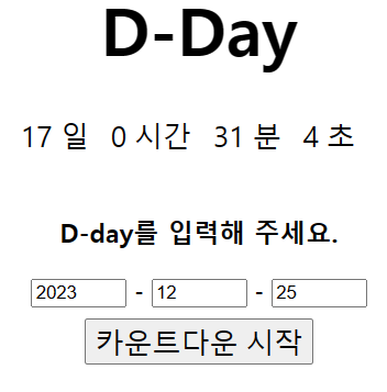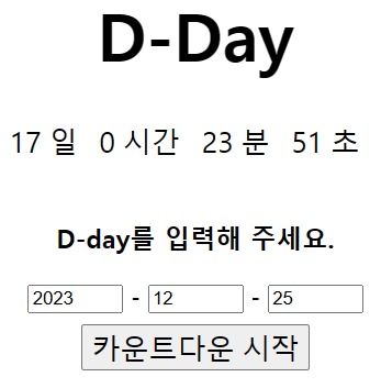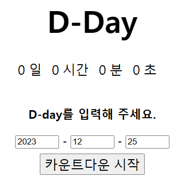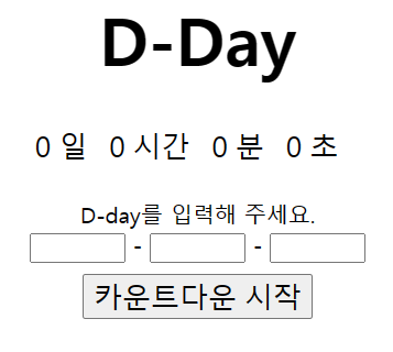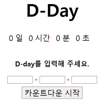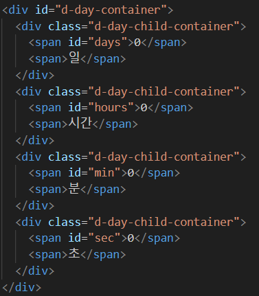 0일 0시간 0분 0초는 d-day-container라는 아이디를 가진 <div>에 감싸져 있다.