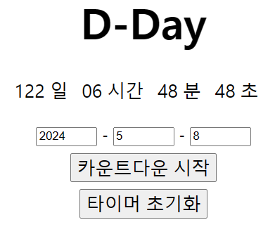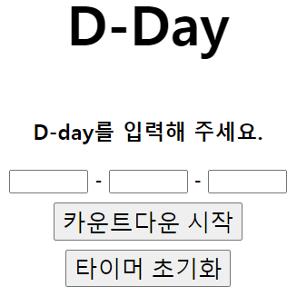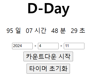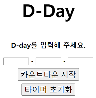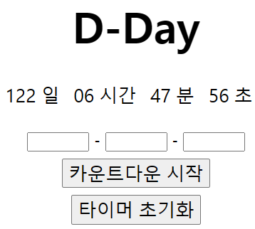 [카운트다운 시작] 버튼을 눌렀을 때 당시의 input box에 값에 있는 날짜인 targetDateInput을 value값으로 넣었다.