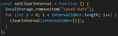 그래서 "saved-date"가 저장된 뒤에도 setClearInterval()을 통해 removeItem이 실행된다.