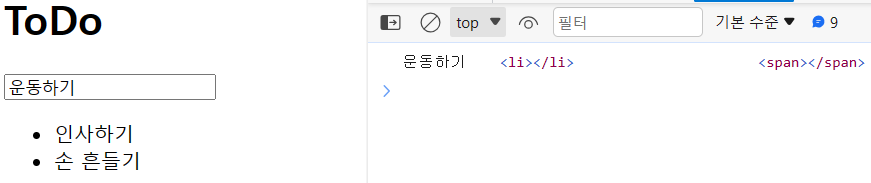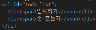 → 엔터 누르면 <li><span>내용</span></li> 라는 html 코드가 생성되어야 함.