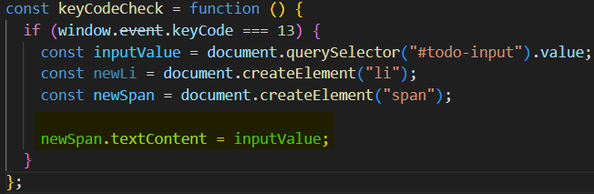 <span>의 값을 바꿔주기 위해 textContent를 사용한다.