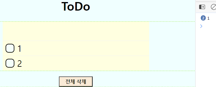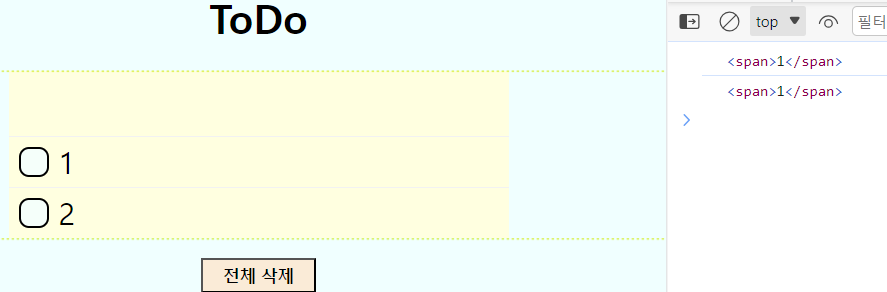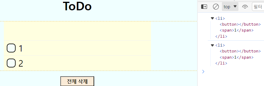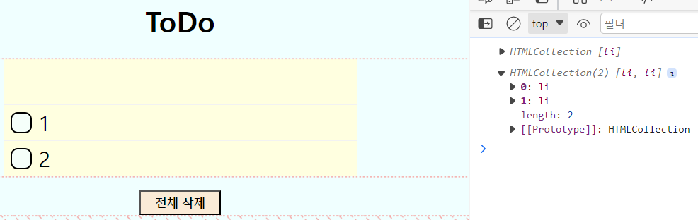 <li>들을 생성하고 전체 삭제 버튼을 누르면 querySelectorAll에 대한 결과로 배열이 생성된다.