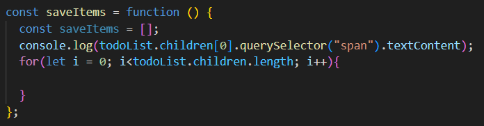 <span>의 내용만 가져와서 saveItems 배열에 넣은 뒤 통째로 local stroage에 저장하자.