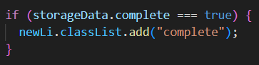 storageData에 complete정보가 true라면 newLi에 "complete"를 추가한다.