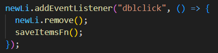 → 더블 클릭할 때 localStorage에 저장을 안 해줬기 때문