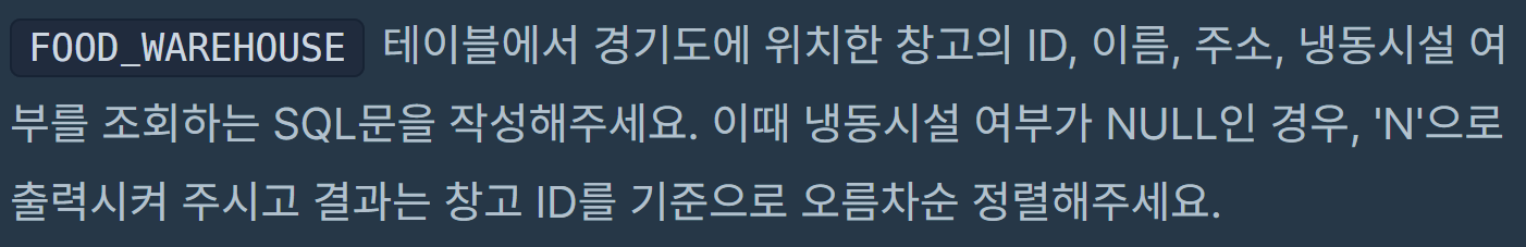 [mysql/oracle]경기도에 위치한 식품창고 목록 출력하기
