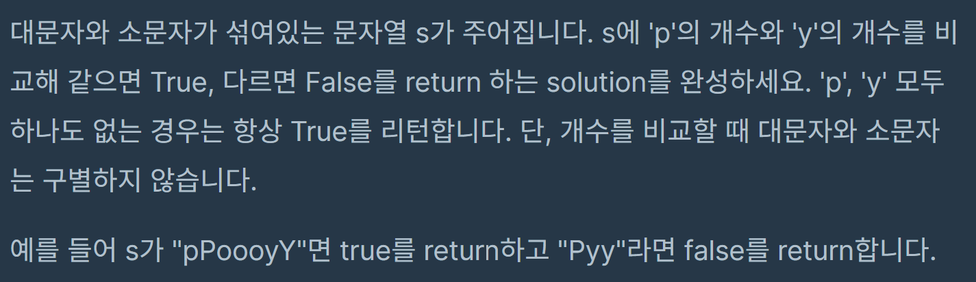 replace로 각각 P, Y를 제외한 문자열의 길이를 구한다.