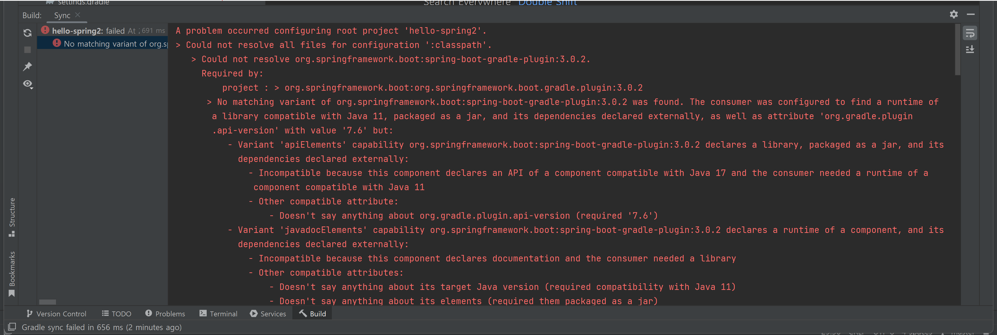 이 에러는 내가 받은 gradle과 스프링의 버전 차이 때문에 발생한 것으로