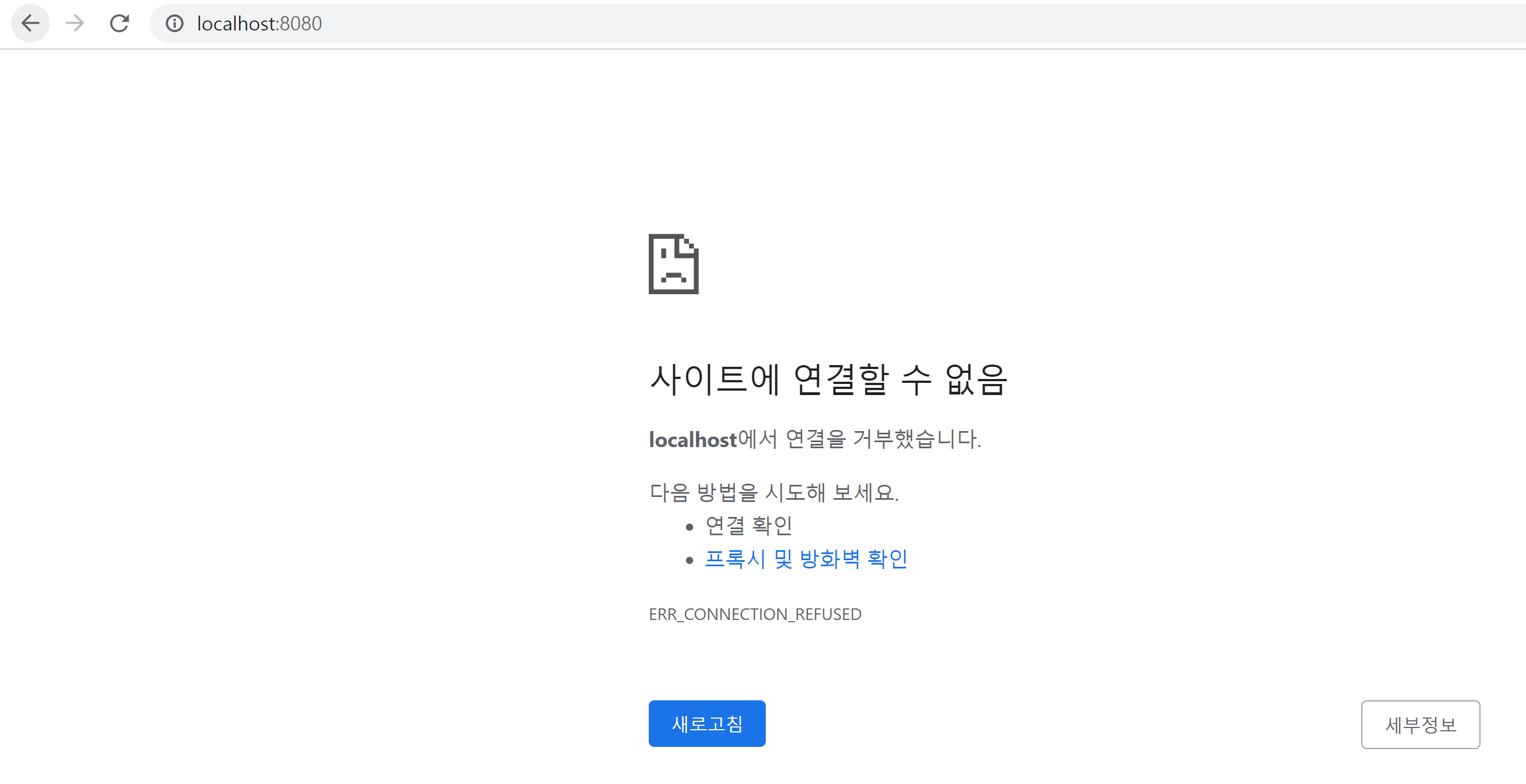 이 상태에서 브라우저에 localhost:8080이라고 입력해본다.