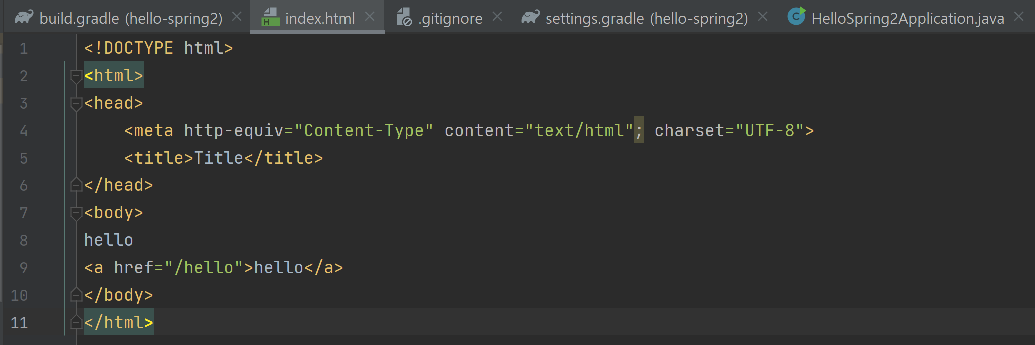 [src] - [main] - [java] - [resource] - [static]에서 index.html을 만들고 간단한 내용을 넣는다