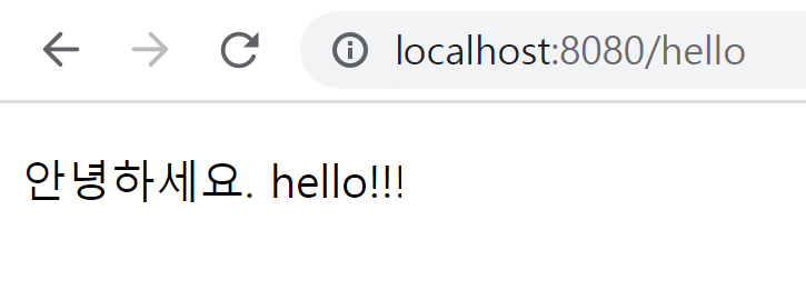 리턴값을 보낼 때 model이 넘어오는데 여기서는 data에다가 hello!!!라는 값을 담아 보냈다.