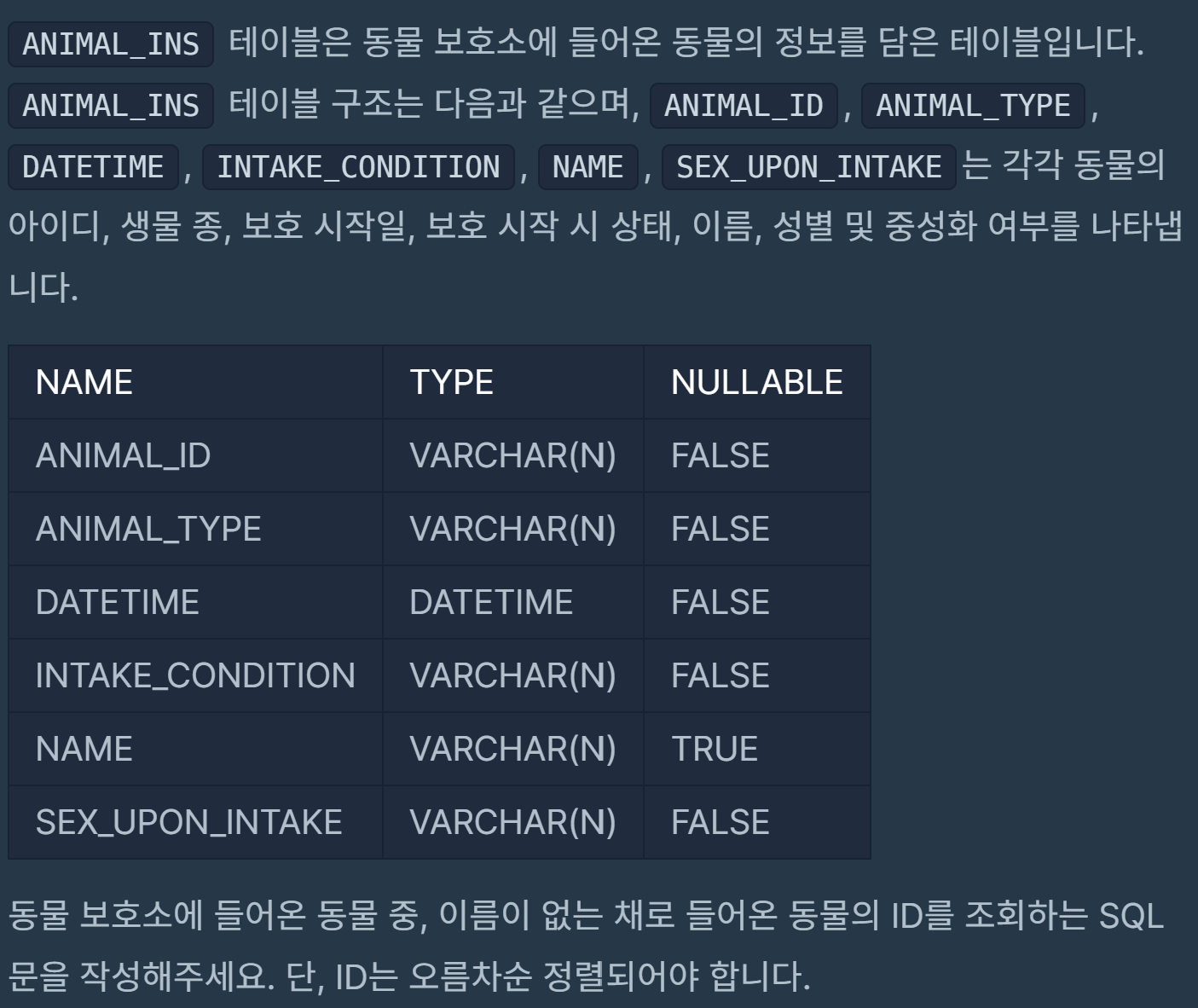 [mysql/oracle] 이름이 없는 동물의 아이디