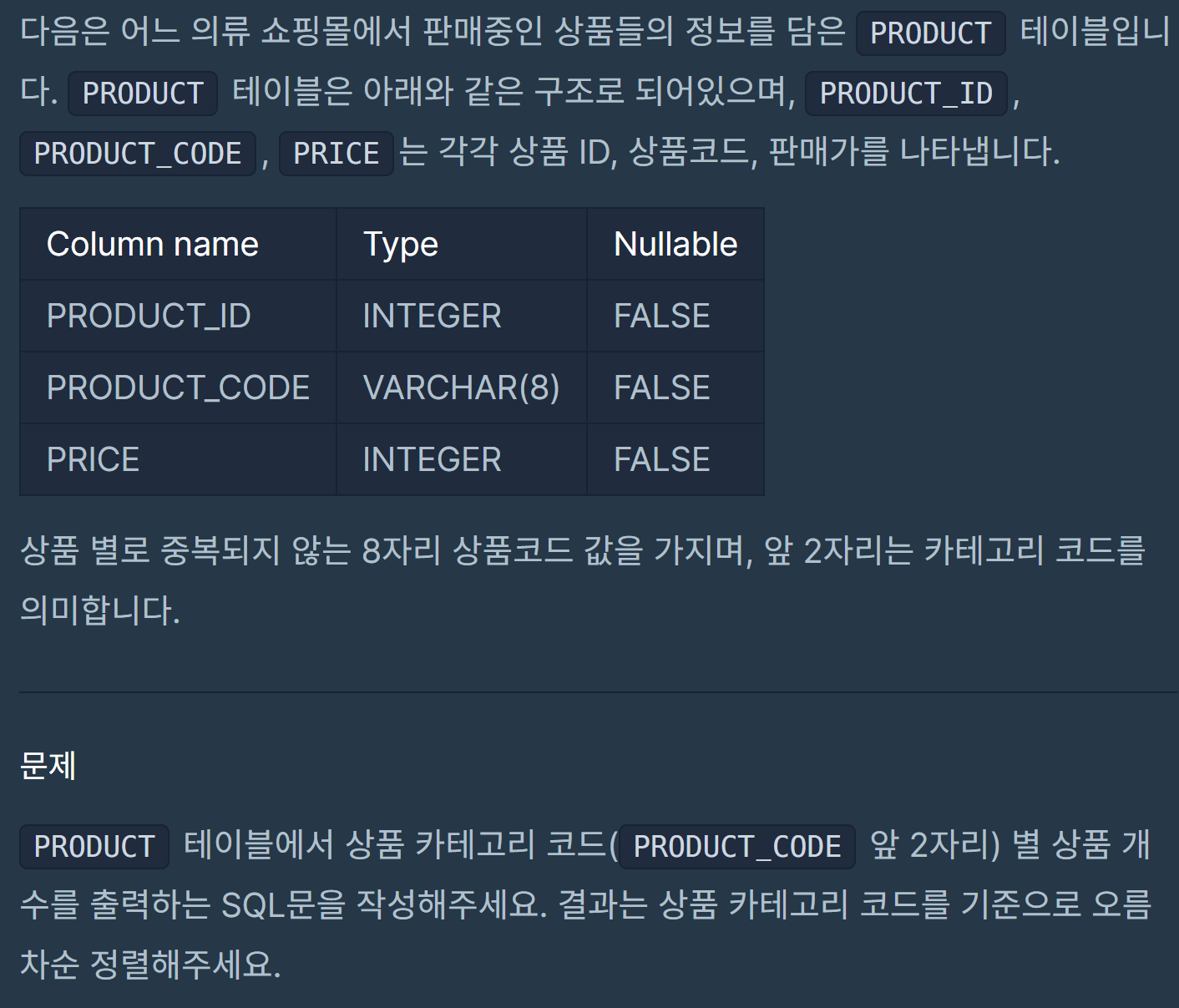 [mysql/oracle] 카테고리 별 상품 개수 구하기