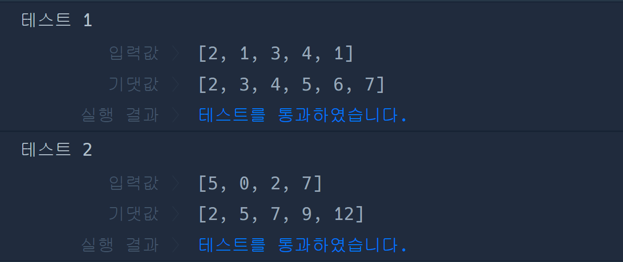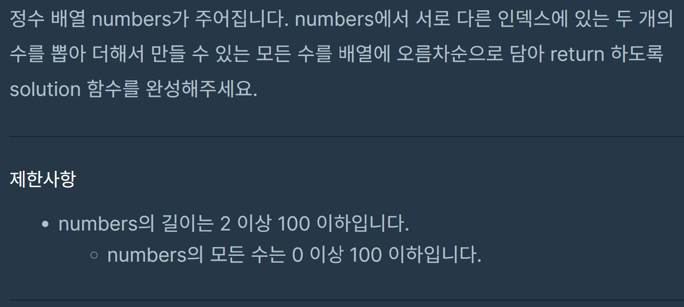 for문으로 numbers배열에 담긴 수들을 다 더해주고 answer(TreeSet)에 넣어주면 자동 정렬 완료.
