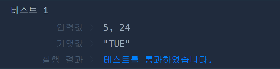 1월 1일이 금요일이라는 힌트를 이용해 나머지가 1인 경우는 FRI이라는 것을 기준으로 요일을 지정한다.