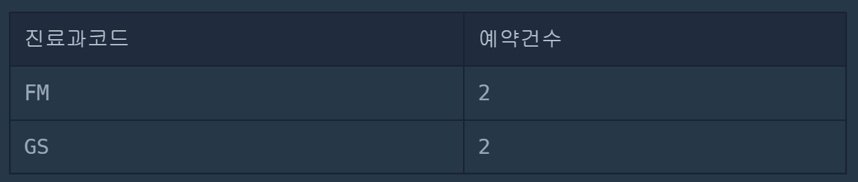 [mysql/oracle] 진료과별 총 예약 횟수 출력하기