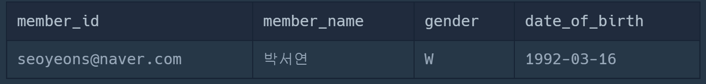 SELECT member_id, member_name, gender