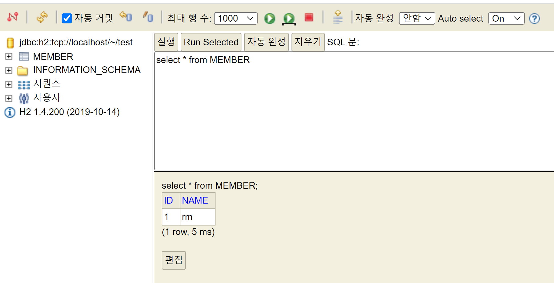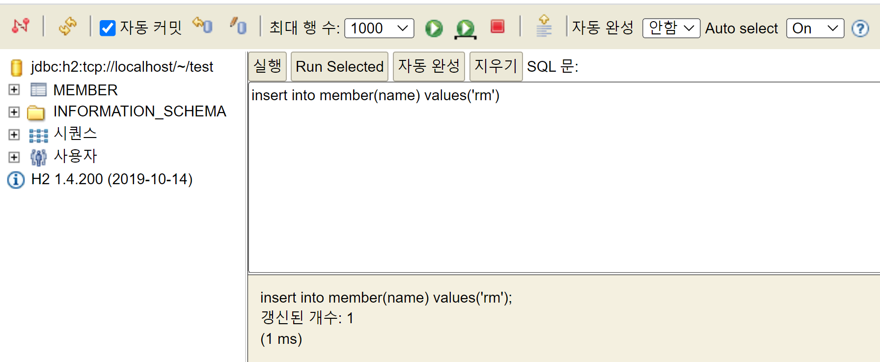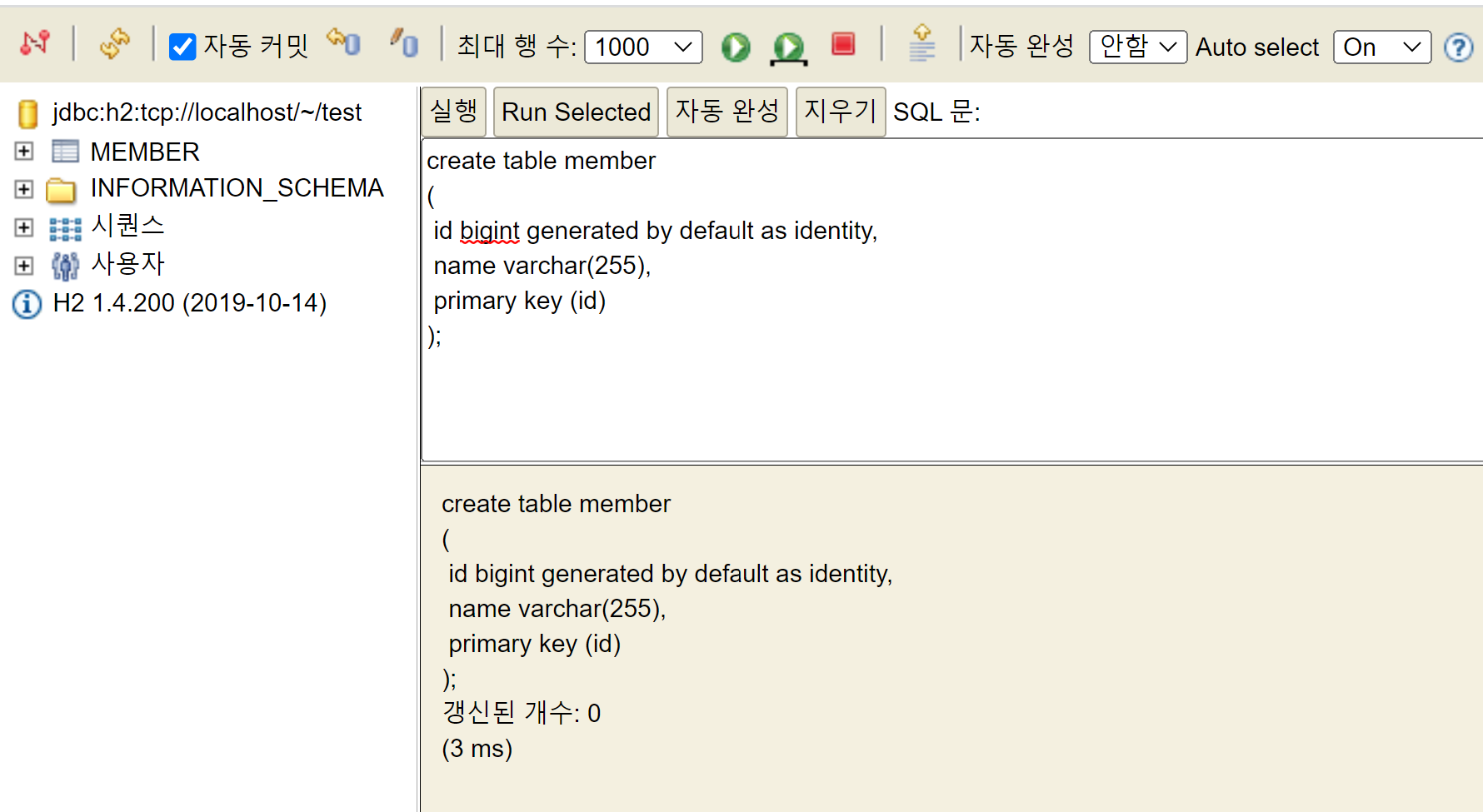 그럼 이제 member 테이블에 h2에 만들어보자.