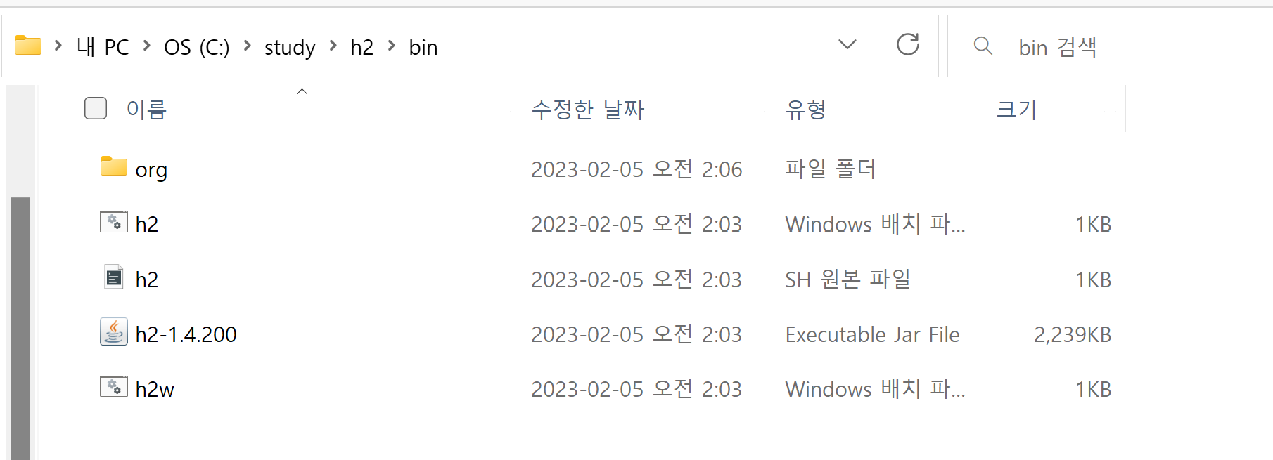 Archive Downloads (h2database.com)에서 1.4.200을 다운 받고 원하는 위치에 압축을 푼다.