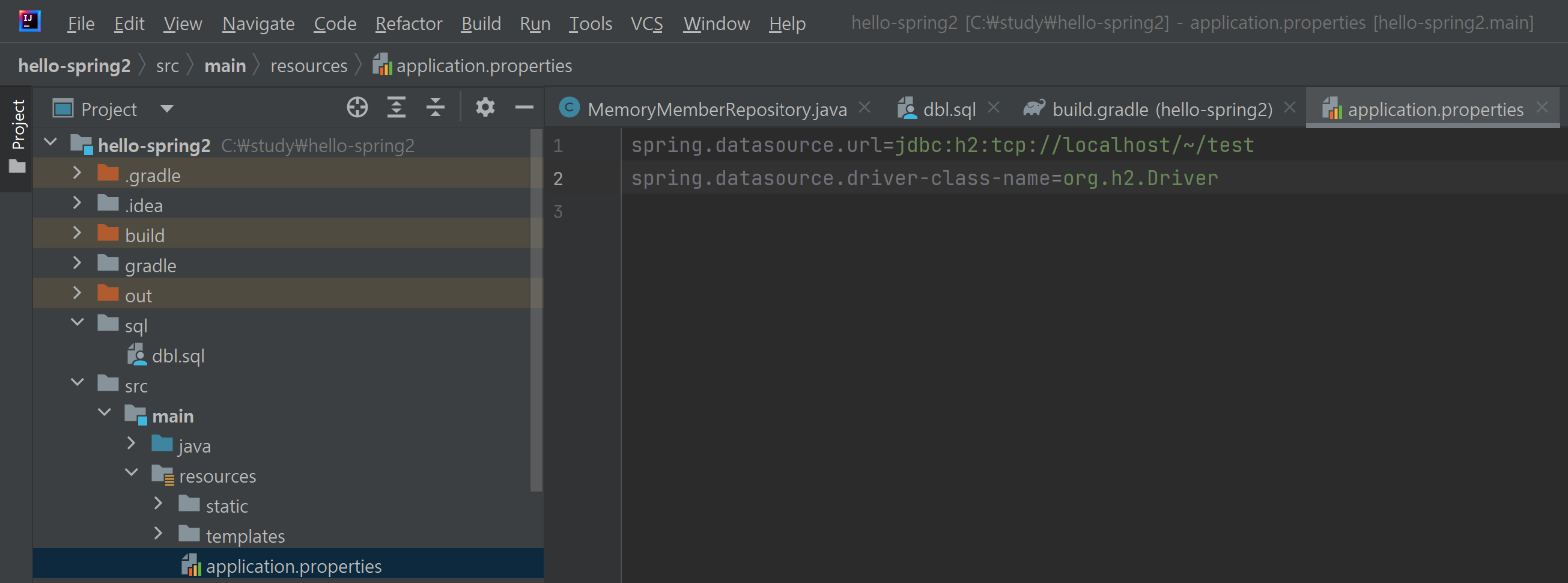 이렇게 해두면 스프링부트가 DataSource를 만들어두고 우리는 주입 받아서 쓸 수 있다.