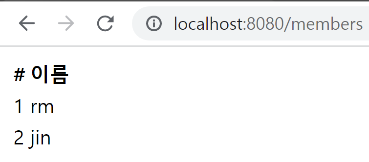 여기서 회원 목록으로 들어가면 db에서 저장했던 rm이 나와야 한다.