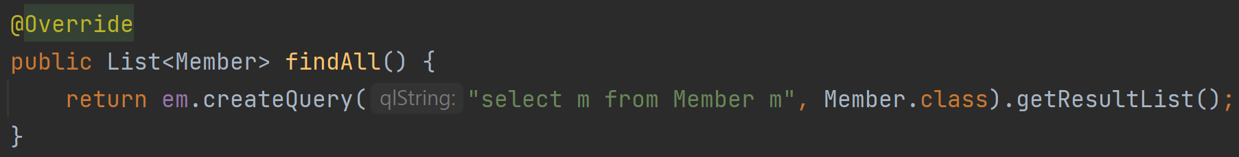 jpql : 객체(Entity)를 대상으로 쿼리를 날린다.