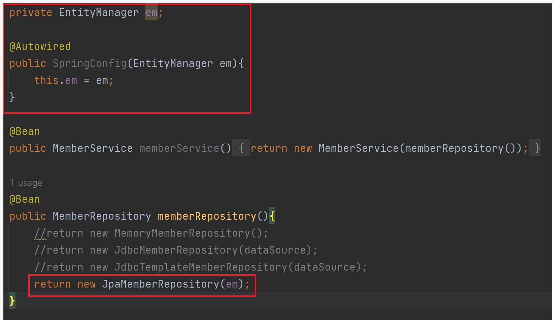 실행시키려면 SpringConfig에서 바꿔끼자.
