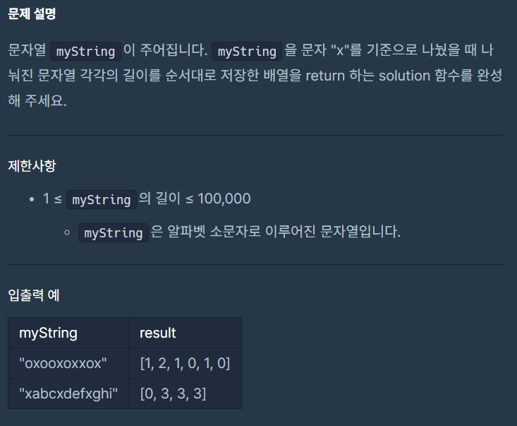 이 4가지를 모두 spilit("x", -1) 시켜보겠다.
