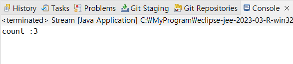 3. count() : 최종 처리기능으로 마지막에 남은 원소들을 카운팅한다.
