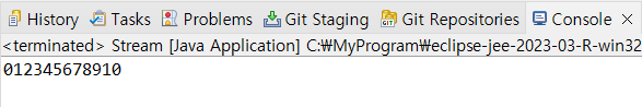 IntStream.rangeClosed(0, 10).forEach(System.out::print);