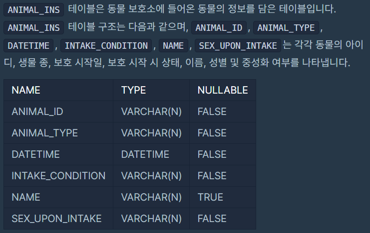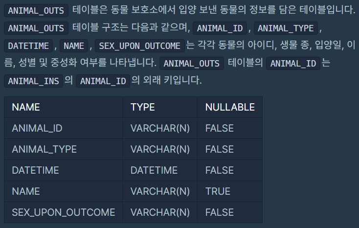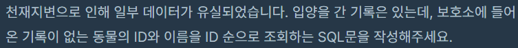 | [mysql/oracle] 보호소에 중성화한 동물 (0) | 2023.09.04 |